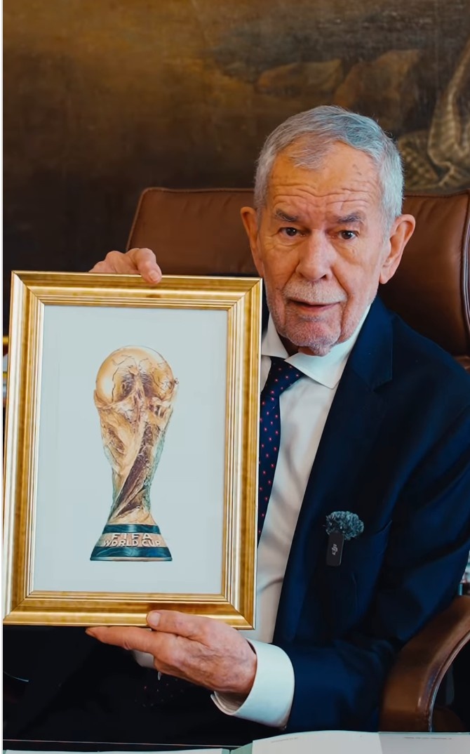 奥地利总统范德贝伦幽默回应阿瑙托维奇,他展示大力神杯的照片,说道:“亲爱的阿瑙托维奇,这个看着眼熟吗?”